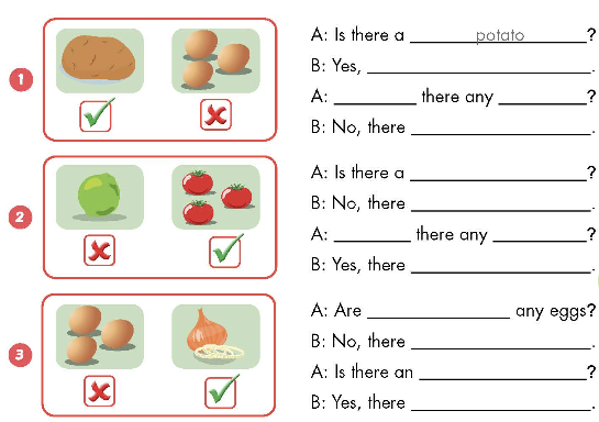A: Is there a potato? (Có 1 củ khoai tây phải không?)
