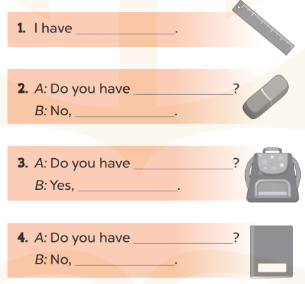 4. A: Do you have a school bag? (Bạn có một chiếc cặp sách phải không?)