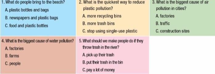 2. What is the quickest way to reduce plastic pollution? C. stop using single-use plastic