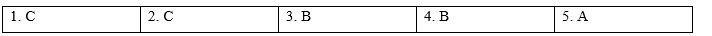 (Bạn sẽ nghe thấy năm đoạn hội thoại ngắn. Bạn sẽ nghe mỗi cuộc hội thoại hai lần. Có một câu hỏi cho mỗi cuộc hội thoại. Với mỗi câu hỏi, hãy chọn câu trả lời đúng (A, B hoặc C).)