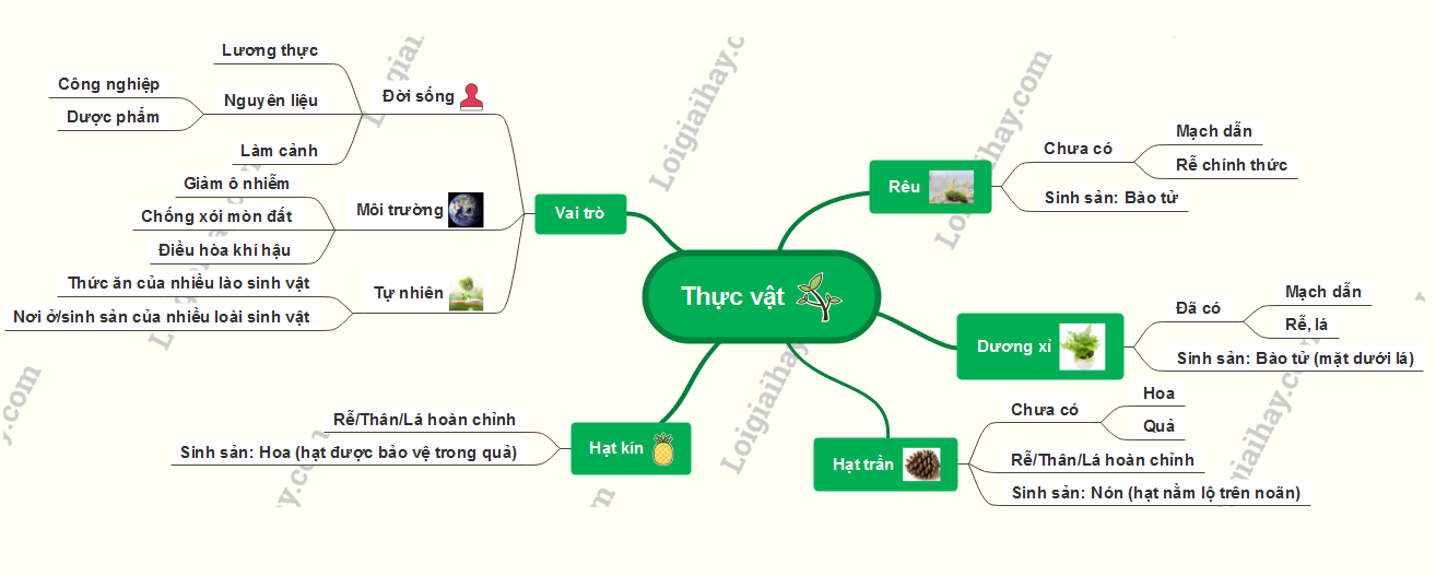 Sơ đồ tư duy vai trò của thực vật trong đời sống và sản xuất: