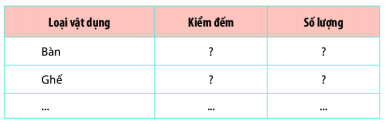 Các em kiểm đếm tất cả vật dụng trong lớp học của các em rồi điền vào bảng.