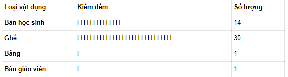 Thống kê các vật dụng có trong lớp