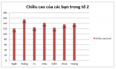 Biểu diễn chiều cao của các bạn trong tổ 2 bằng biểu đồ cột.