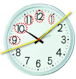 Các vạch nằm trong góc tạo bởi kim giây và kim phút là các vạch số: 9; 10; 11; 12; 1.