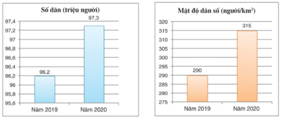 Hãy tạo một bảng để tóm tắt và trình bày thông tin về dân số, mật độ dân số của nước ta trong 2 biểu đồ sau đây: