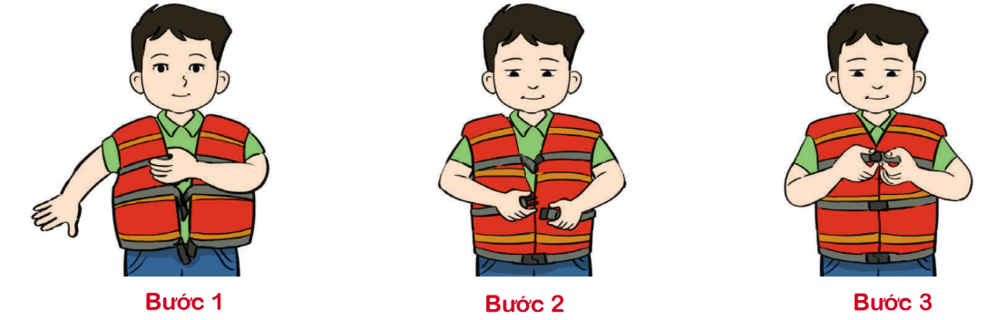 Viết lời hướng dẫn các bước mặc áo phao phù hợp với mỗi hình: