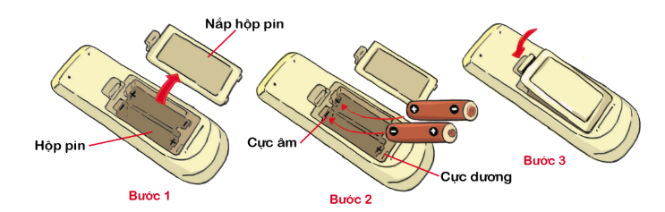 Trong nhà bạn, ti vi, máy điều hòa và nhiều quạt điện được bật, tắt, điều chỉnh bằng chiếc điều khiển. Để lắp pin cho những chiếc điều khiển ấy, trước hết, bạn hãy mở nắp hộp pin (thường ở mặt sau chiếc điều khiển). Tiếp theo, bạn lắp pin vào hộp theo đúng kí hiệu ghi trên hộp (kí hiệu + là cực dương kí hiệu - là cực âm). Cuối cùng bạn đậy nắp hộp pin lại.