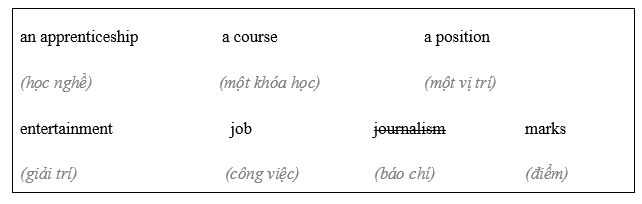 (Để trở thành một nhà báo bạn cần đạt điểm cao ở trường và sau đó vào đại học. Bạn sẽ theo học một khóa học liên quan đến báo chí tại Học viện Báo chí để có được bằng cấp phù hợp để bắt đầu đào tạo tại một tòa soạn.)