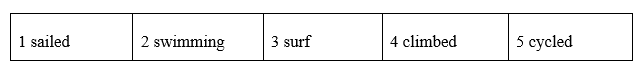 Later, they kayaked over falls in one-person boats. Then they 1 sailed around a lake in a big boat. They ended the day by 2 swimming in a river, under three bridges. Tomorrow, they’ve going to 3 sufr on the waves in the sea.