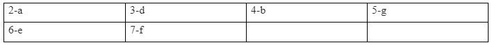 (Nối các từ ở số 1-7 với các từ ở a-g.)