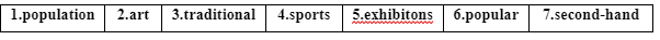 (Điền vào chỗ trống với second - hand, exhibitions, art, traditional, population, popular hoặc sports.)