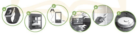 (Nối các thiết bị điện tử (1-5) với các hình ảnh đúng (a - e).)