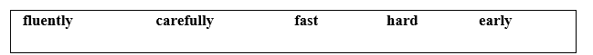 (Hoàn thành các câu với các hình thức phù hợp của trạng từ trong hộp.)