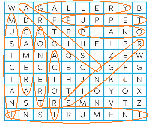1. Find the following words in the puzzle. 2. Fill in each gap with a word or a phrase from the box. 3. Match the famous people in A with their occupations in B. 4. Choose the correct answer A, B, C or D to complete each of the sentences. 5. Complete the following sentences by filling in each gap with a word. 6. Fill in each of the blanks with one suitable word. 7. Use the cues given to write complete sentences.