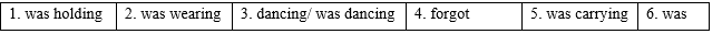 Last night I had an amazing dream. In my dream, when I was walking to school, a strange creature came my way. He (1) _____ a big object in his hands. He (2) _____ strange clothing and (3) _____ a weird dance. He told me about his long trip from the past. I was so surprised that I (4) _____ to go to school. I asked him what he (5) _____. He said that it was a present for me. Later I woke up and wondered if it (6) _____ all a dream. I hope not!