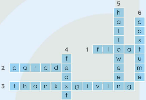 1. Solve the crossword puzzle. 2. Match each festival with its activity / activities. 3. Choose the correct answer A or B. 4. Find a mistake in each sentence and correct it. 5. Change the following sentences into Yes/ No questions.