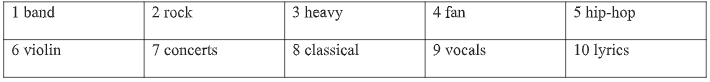(Viết về âm nhạc yêu thích của bạn. Sử dụng các từ vựng trong bảng và trong bài tập số 3 để giúp bạn.)