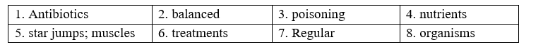 | 5. muscles | 6. disease | 7. bacteria | 8. fitness |