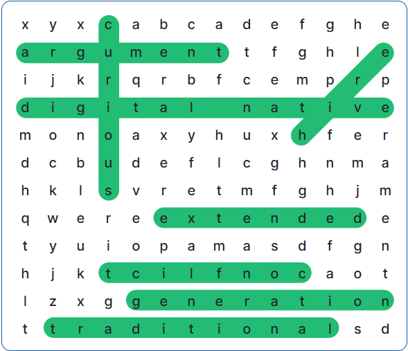 1. Find the following words in the word search. 2. Choose the best answers to complete the sentences.3. Complete the text using the words and phrases in the box.