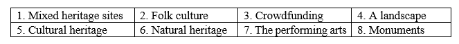 5. __________ includes objects, sites, traditions, or practices that have been passed down from past generations and represent the history and identity of a country or society.