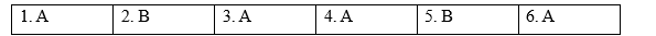 | 6. B | 7. B | 8. A | 9. C | 10. C |