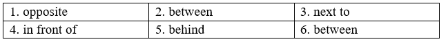 6. The car park is ______ the clothes shop and the hospital.