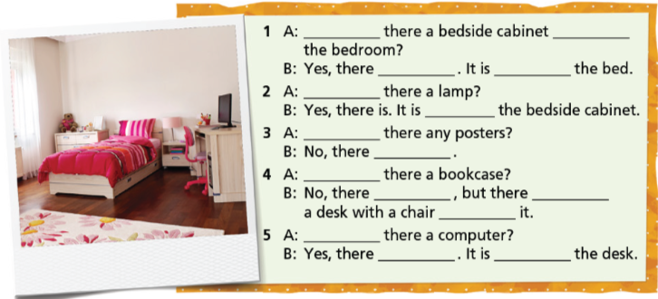 (Vâng, đúng rồi. Nó ở gần chiếc giường.)
