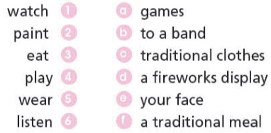 1. Choose the correct options. 2. Label the pictures. 3. Underline the odd word out. 4. Match the words to make phrases. 5. Complete the text with the words from the list. 6. Look at the picture. Fill in each gap with the correct preposition. 7. Fill in each gap with in, on or at.