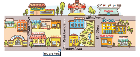 Wetherby is a small town in England. It is very beautiful. You can buy fresh bread and delicious cakes from the local 1) baker's. Opposite the baker's, there is a 2) post office. You can send letters from there. There is also a 3) library in the town. You can borrow books from there. Next to it, there is a new 4) school with a computer in every classroom. Doctors work at the small 5) hospital. There is also a big 6) supermarket in the town. You can buy meat, fish, fruit and vegetables there. There isn't a mall in Wetherby, only small shops. For children, there is a 7) toy shop with trains, cars, dolls and balls. There is also a 8) clothes shop with trendy clothes for everyone.