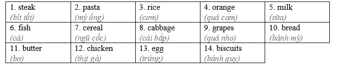 (chất dinh dưỡng đa lượng: cam - bánh mì - mì ống)