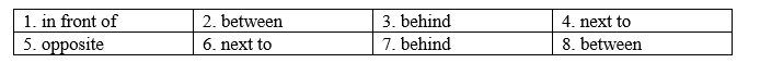 (Nhìn vào bức tranh. Điền vào mỗi chỗ trống với giới từ đúng.)