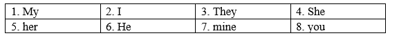 8. Fill in each gap with the correct subject/object personal pronoun or possessive adjective/pronoun.