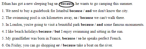 (Hoàn thành các câu với because và các cụm từ cho sẵn.)