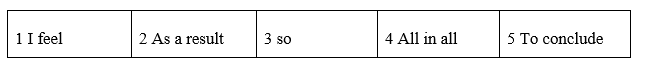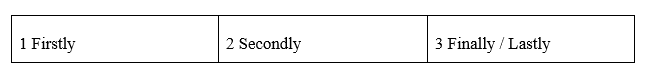 In my opinion, school uniforms are a good thing for many reasons. 1 …………., I believe everyone should look smart at school. 2 ………….., if students have to wear a uniform, everyone's clothes are the same. This stops students from looking richer or poorer than others. 3 ………….., I think it encourages students to obey the rules and feel part of the school community.
