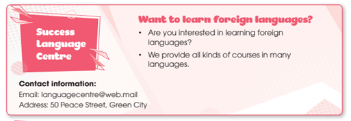 (Viết một lá thư (140-170 từ) để yêu cầu thông tin về khóa học trong quảng cáo bên dưới. Sử dụng các ý tưởng gợi ý trong hộp để giúp bạn hoặc bằng ý tưởng riêng của bạn.)
