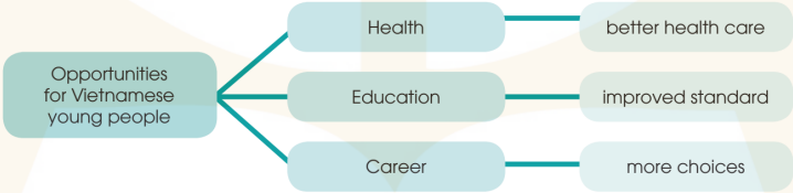 3. Write a paragraph (120-150 words) about the benefits young Vietnamese people have gained since Viet Nam joined different international organisations. You can use the suggested ideas below.